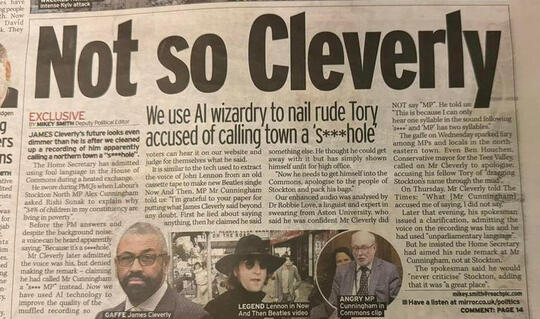 Today I wrote an article in the national press after Stockton came under attack from the Conservative government’s new Home Secretary.I am committed to stand up for Stockton so went straight out to defend it in national TV news from Yarm High Street and in the national press, as well as our local champions at BBC Tees, Teesside Live and The Northern Echo.The Mirror gave me space to defend Stockton alongside its forensic exposé of how AI technology has proven once and for all that the Home Sec said what we know he said. You can read the full piece below.This isn’t party political. We all make mistakes but it’s about our elected representatives being accountable and doing what is right.Stockton North’s Labour MP Alex Cunningham MP sprung to his feet immediately in the House of Commons to defend our town. We come from different parties but Tees Valley Mayor Lord Ben Houchen was right to condemn Mr Cleverly for “dragging Stockton’s name through the mud”.I believe that Stockton South’s former Conservative MPs Lord James Wharton and Tim Devlin would have called out such an attack on our town just as Paul Williams, Dari Taylor and Lord Ian Wrigglesworth would have done.Former MP for Stockton and Tory Prime Minister Harold Macmillan would never have let it stand. It’s a question of decency in my opinion.That’s why it’s a mystery that the current MP won’t take a stand.At the next election, the new seat of Stockton West will choose a new MP and the choice is simple.Does your candidate stand up for Stockton or not?PROUD TOWN PUT DOWN BY A CLOWNI grew up in Stockton and it’s the place I’m proud to call home today. Straddling County Durham and North Yorkshire, Stockton has a proud history and a bright future.